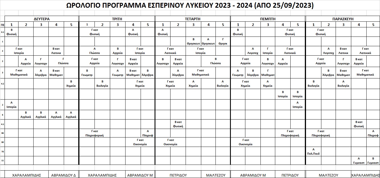 Ωρολόγιο πρόγραμμα 2023-24